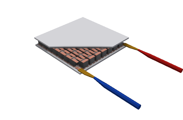 热电器件为固态状模块,通过散热器扩散热量;此外,它还能用于热能发电,将流过器件的热能直接转换成直流电能,覆铜基板的热导率决定了散热器的关键性能。